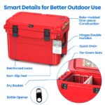 With convenience features such as a quick-drain system and tie-down slots, it stays secure and easy to maintain wherever you take it. Compact yet spacious enough to hold up to 20 cans with ice, this cooler is ready for any adventure that calls for lasting cold.