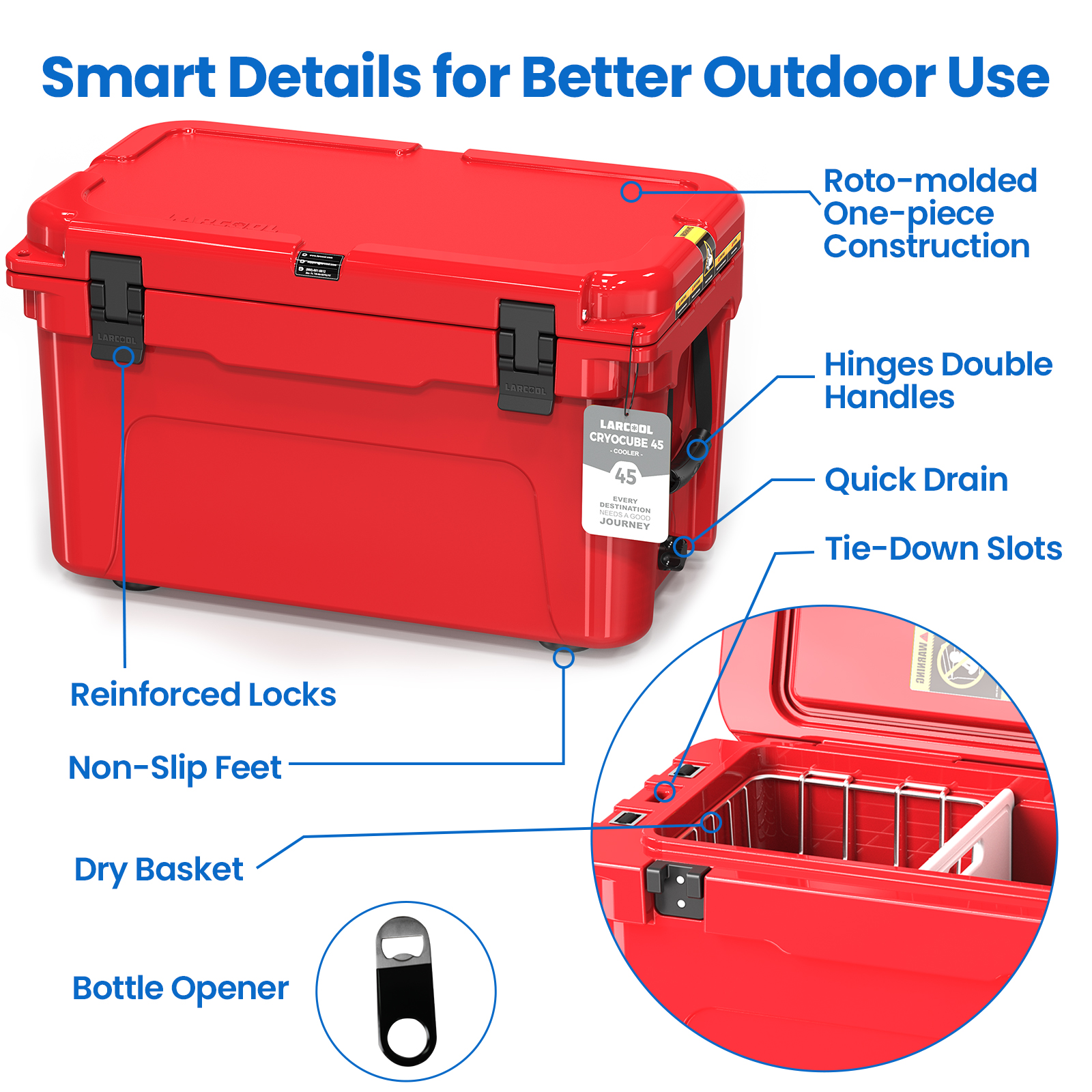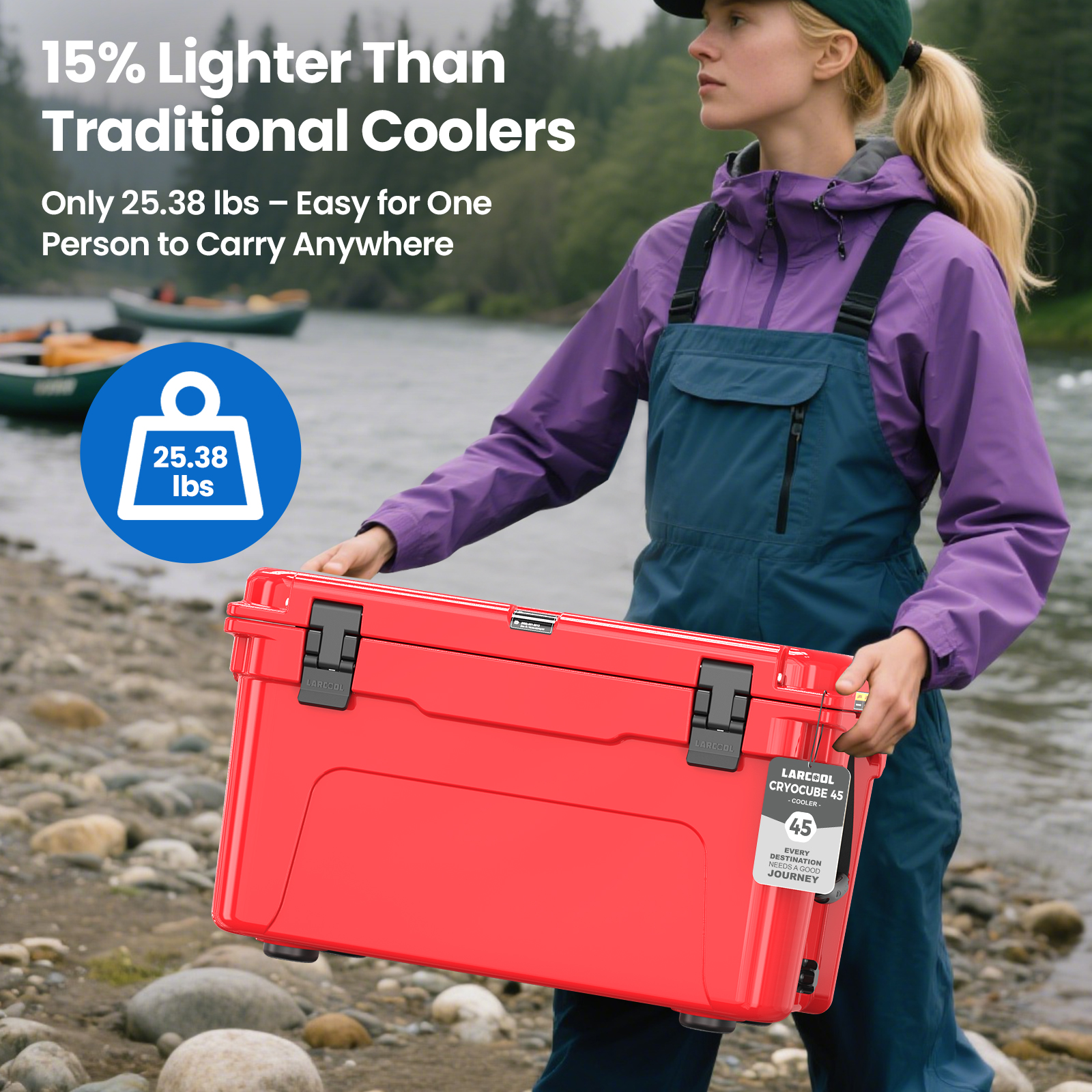 The Larcool ChillElite 45 QT Hard Cooler delivers the perfect balance of strength, storage, and cooling power without sacrificing portability.