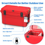 Enhanced with practical features like a quick-drain system, tie-down slots, non-slip feet, this cooler is designed to keep everything cold, organized, and ready for your next group adventure.