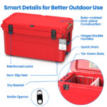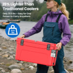 With space for up to 42 cans, it’s designed for extended trips and group gatherings where storage matters. Its 3-inch insulation and high-pressure foam core deliver multi-day ice retention even in scorching outdoor conditions. A rotomolded construction ensures it can handle rough terrain and constant use. With its lightweight build and ergonomic handles, this cooler gives you heavy-duty performance and large-scale storage without the bulk.